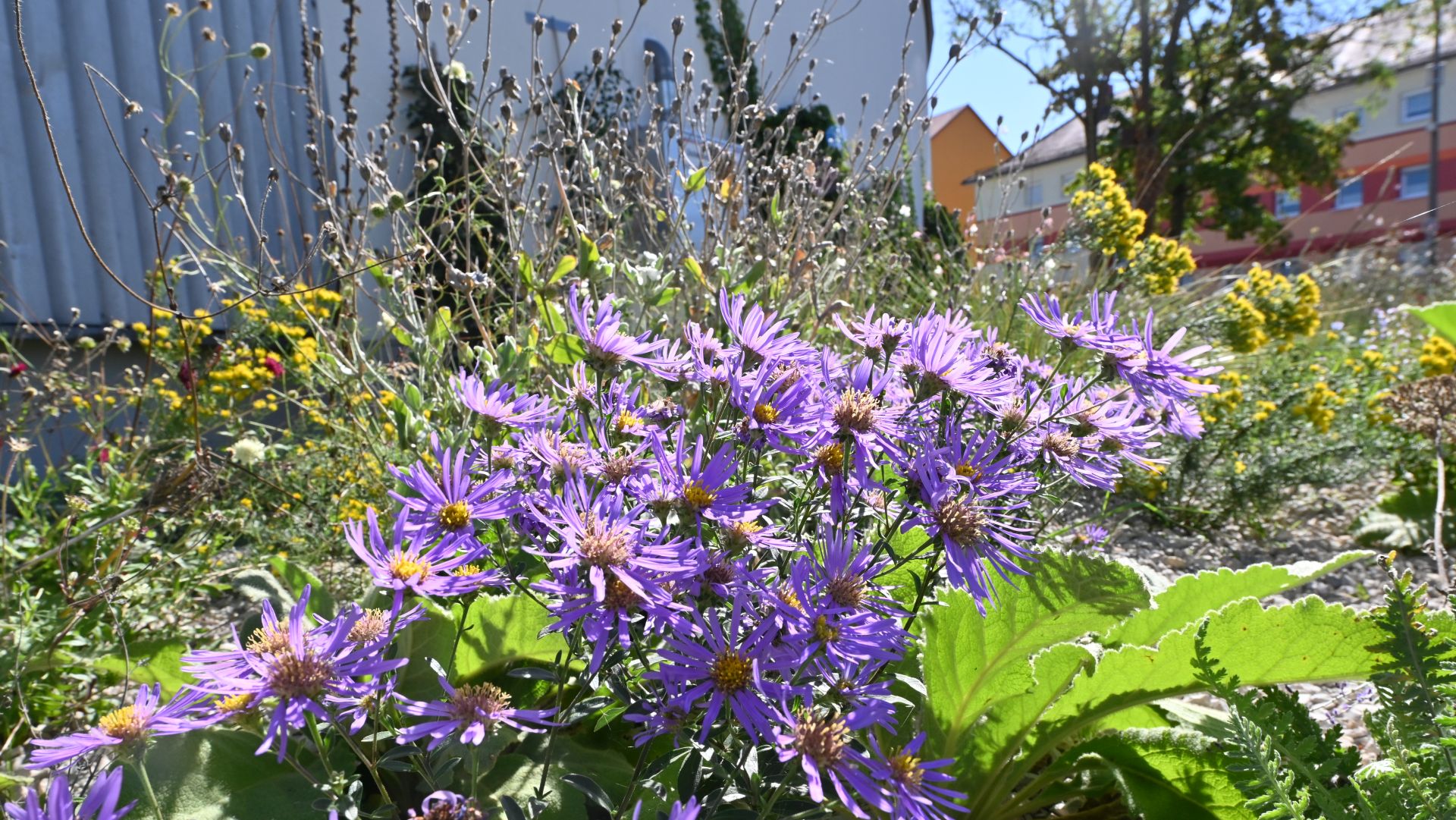 Besonders spannend wird die Entwicklung der Blühwiese entlang der Abstellhalle in der Robert-Bosch-Straße. Über Jahre war sie mit dichtem Buschwerk zugewachsen und bot trotz Grün eigentlich keinen schönen Anblick mehr.