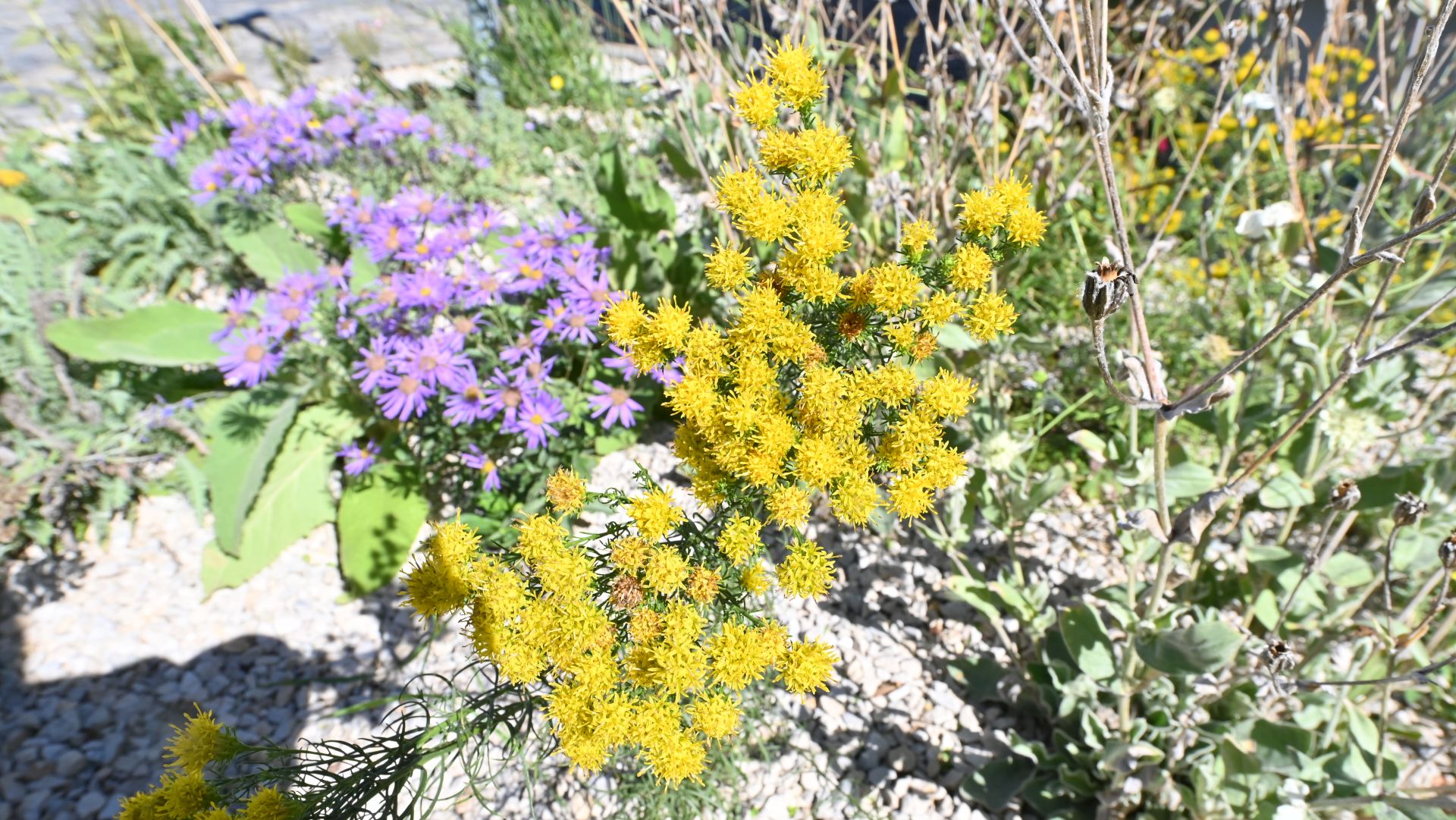 Wer im vergangenen Herbst oder auch jetzt noch irritiert auf die Schotterfläche der neuen Staudenbeete geblickt hat, den möge einerseits der erste Blüherfolg und das Pflanzenwachstum beruhigen, andererseits die Erläuterung des Experten.