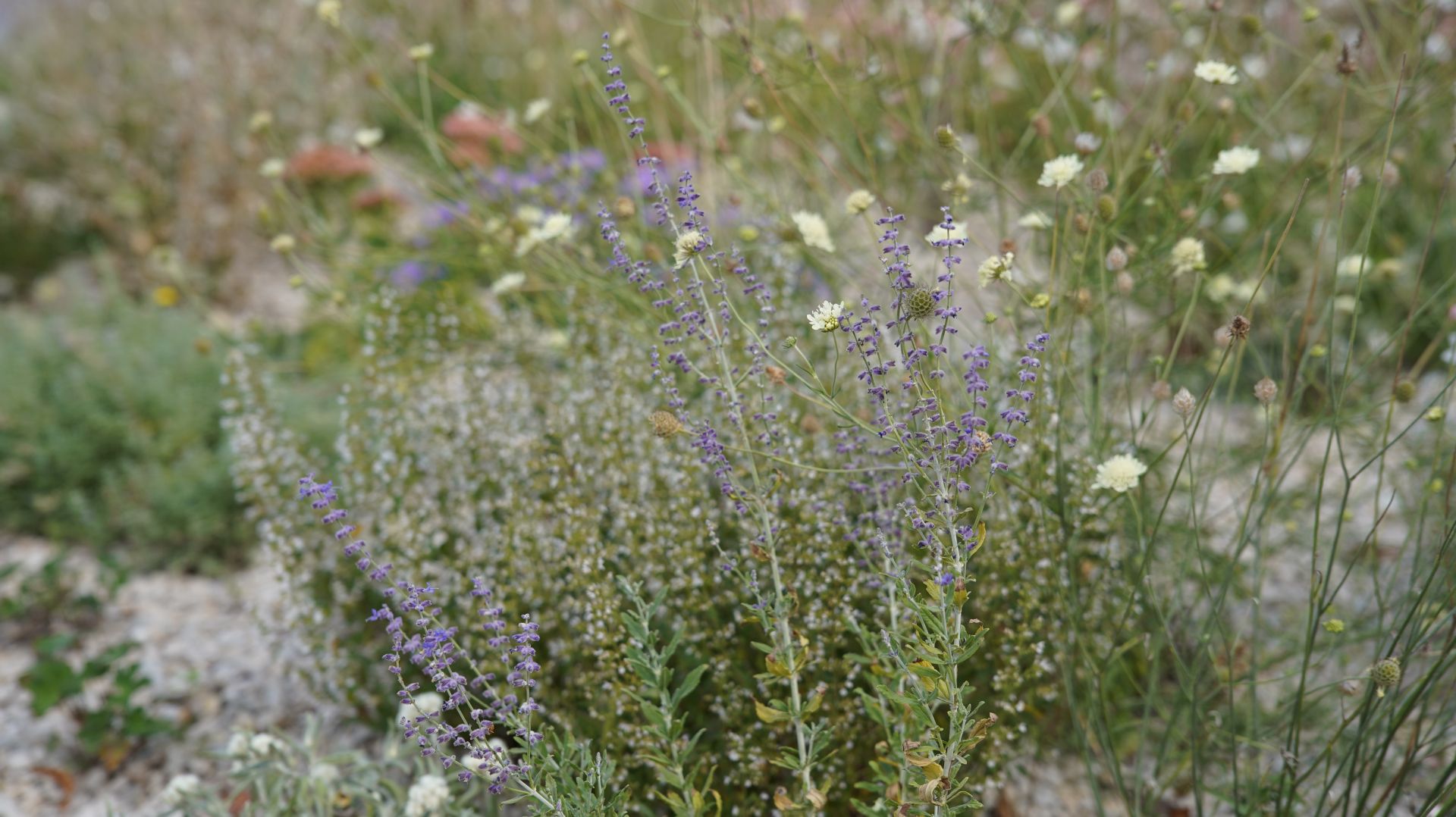 Stauden der Mischung Silbersommer, die im Hochsommer tatsächlich den notwendigen Touch Silber bieten. An einigen Stellen wurde kürzlich nachgepflanzt.